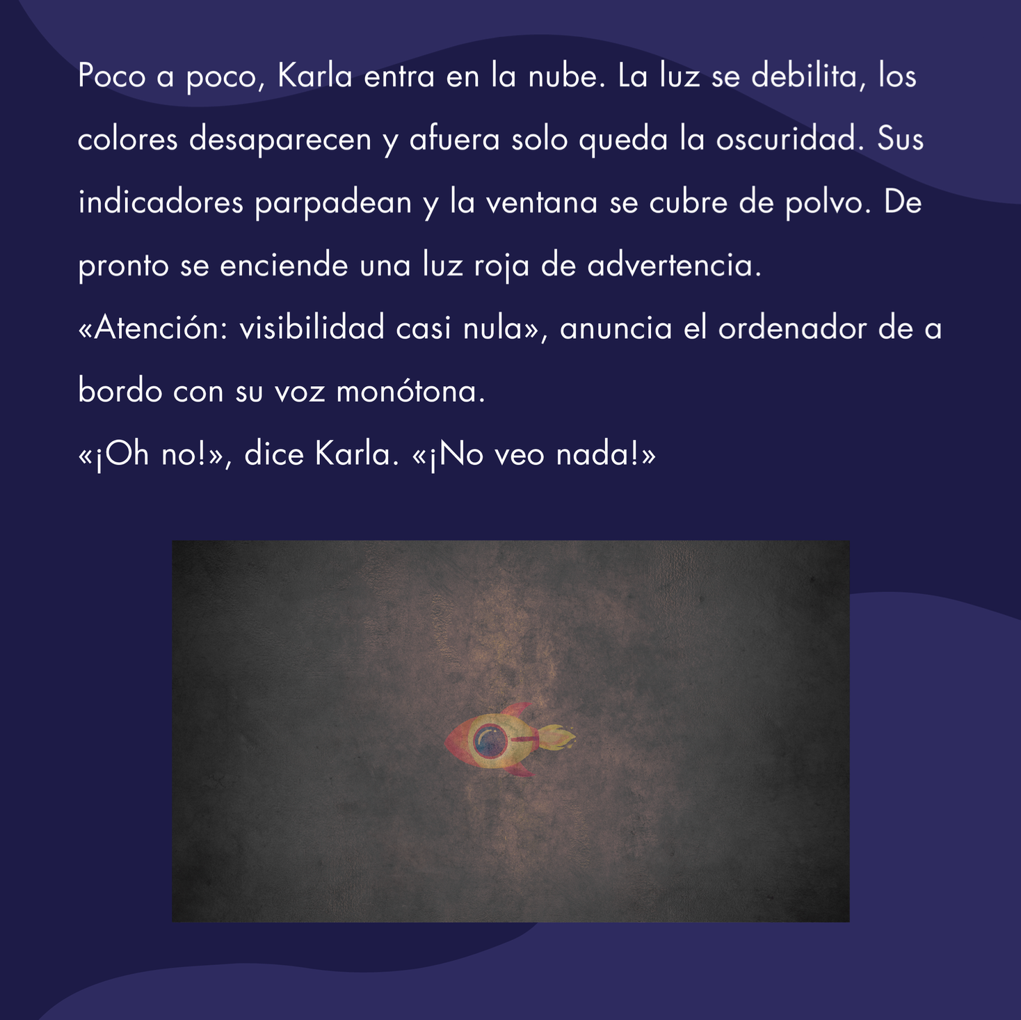 A través de historias llenas de aventura, Karla explora nebulosas, estrellas jóvenes, planetas y lunas, y descubre paso a paso cómo nacen las estrellas y cómo se forman los planetas. Conceptos complejos como la gravedad, el colapso gravitacional, la luz infrarroja o la fusión nuclear se explican de manera clara, sencilla y adaptada a niños.