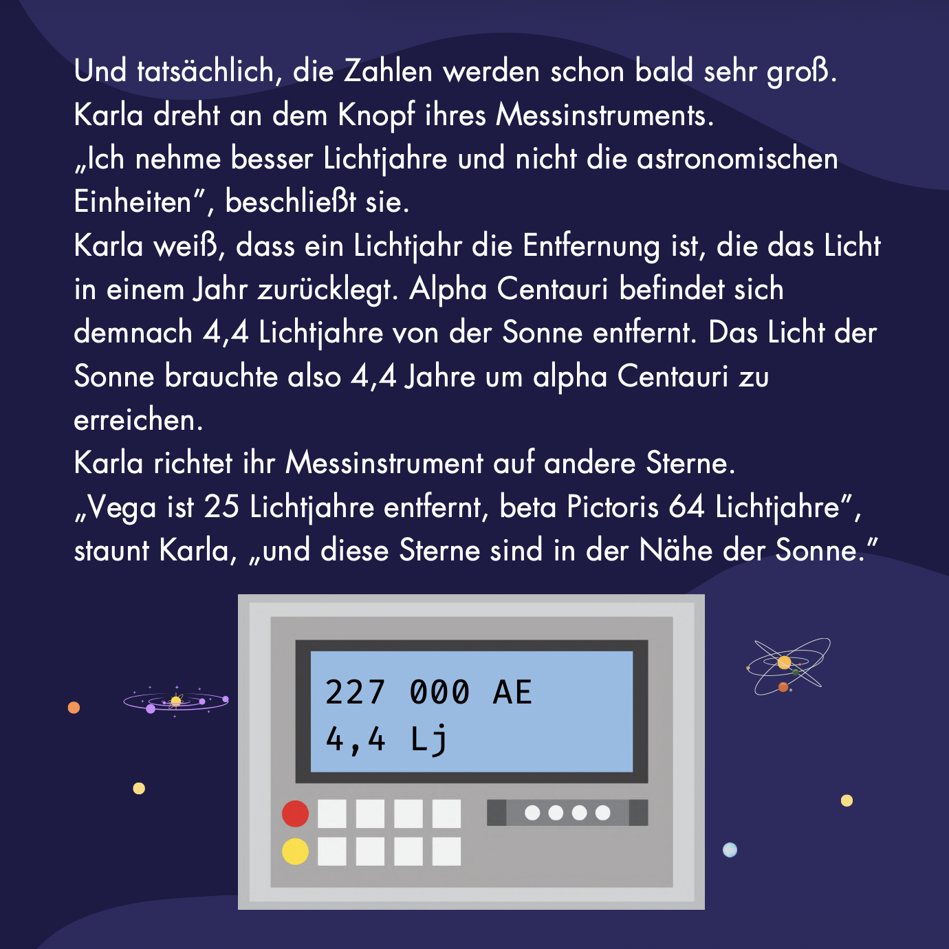Auf ihrer heutigen Forschungsreise erkundet Karla, wie das Universum aufgebaut ist und wo sich die Erde befindet.